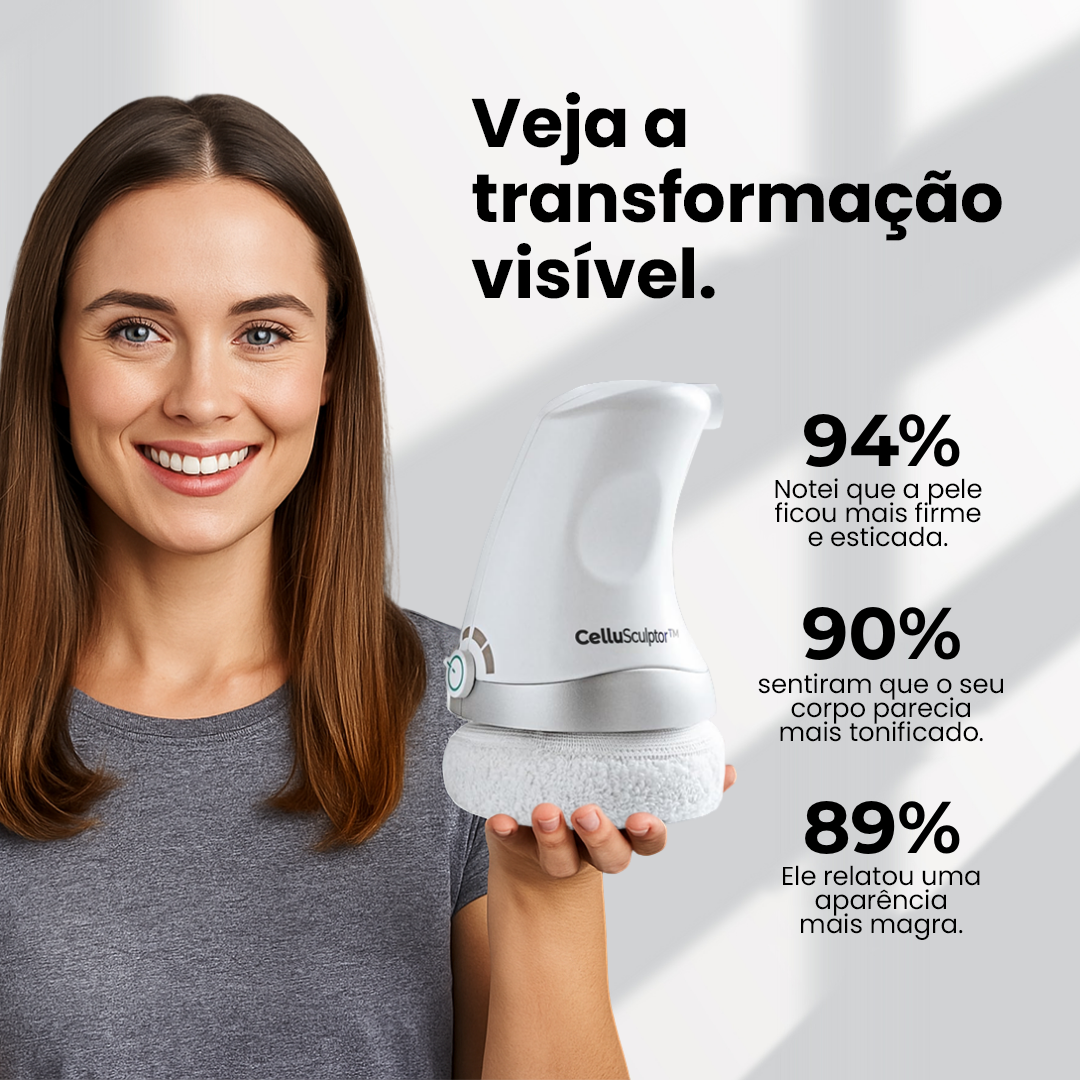 Descubra o Cellu Sculptor™, o nosso dispositivo anticelulite inovador que utiliza vibrações de alta frequência para ajudar a reduzir a gordura localizada e a reafirmar a pele nas zonas desejadas. Obtenha uma pele visivelmente mais lisa, mais firme e mais tonificada, com resultados de nível profissional — diretamente no conforto da sua casa.