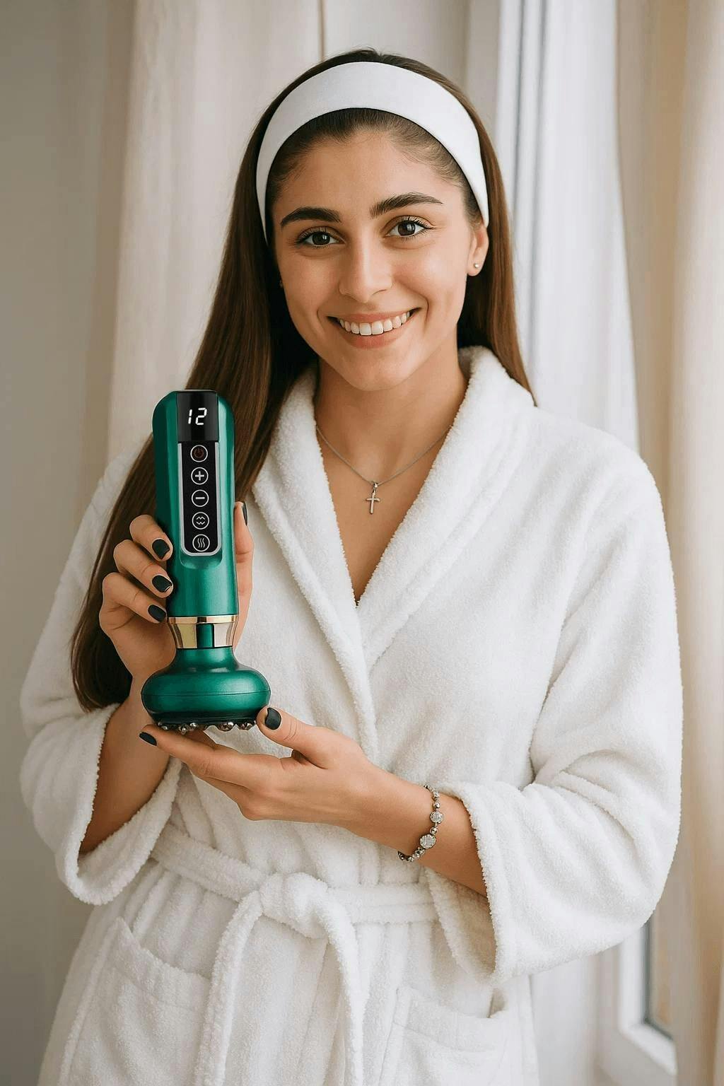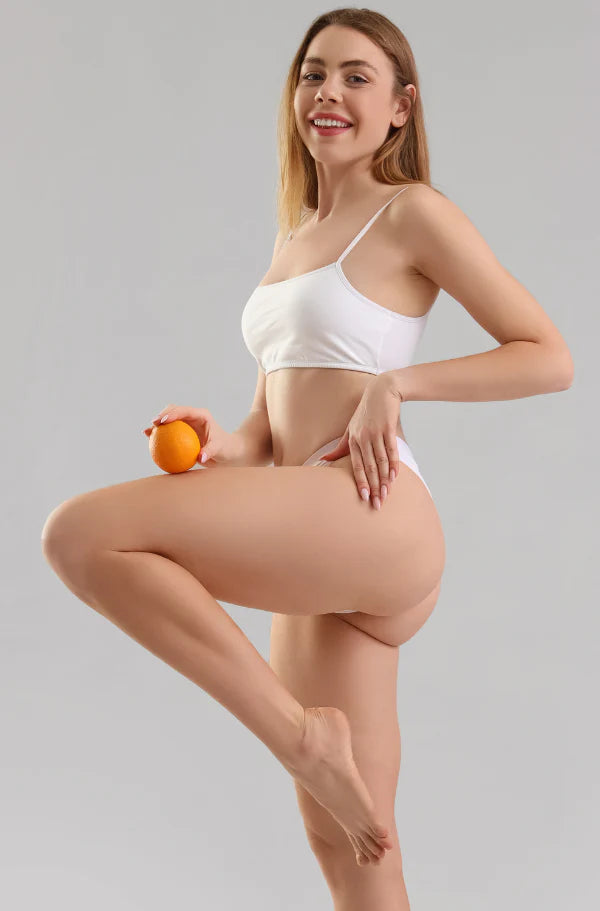 Reduzir a celulite estimula a circulação e promove a produção de colágeno, levando a uma pele mais saudável e rejuvenescida que irradia um brilho natural.