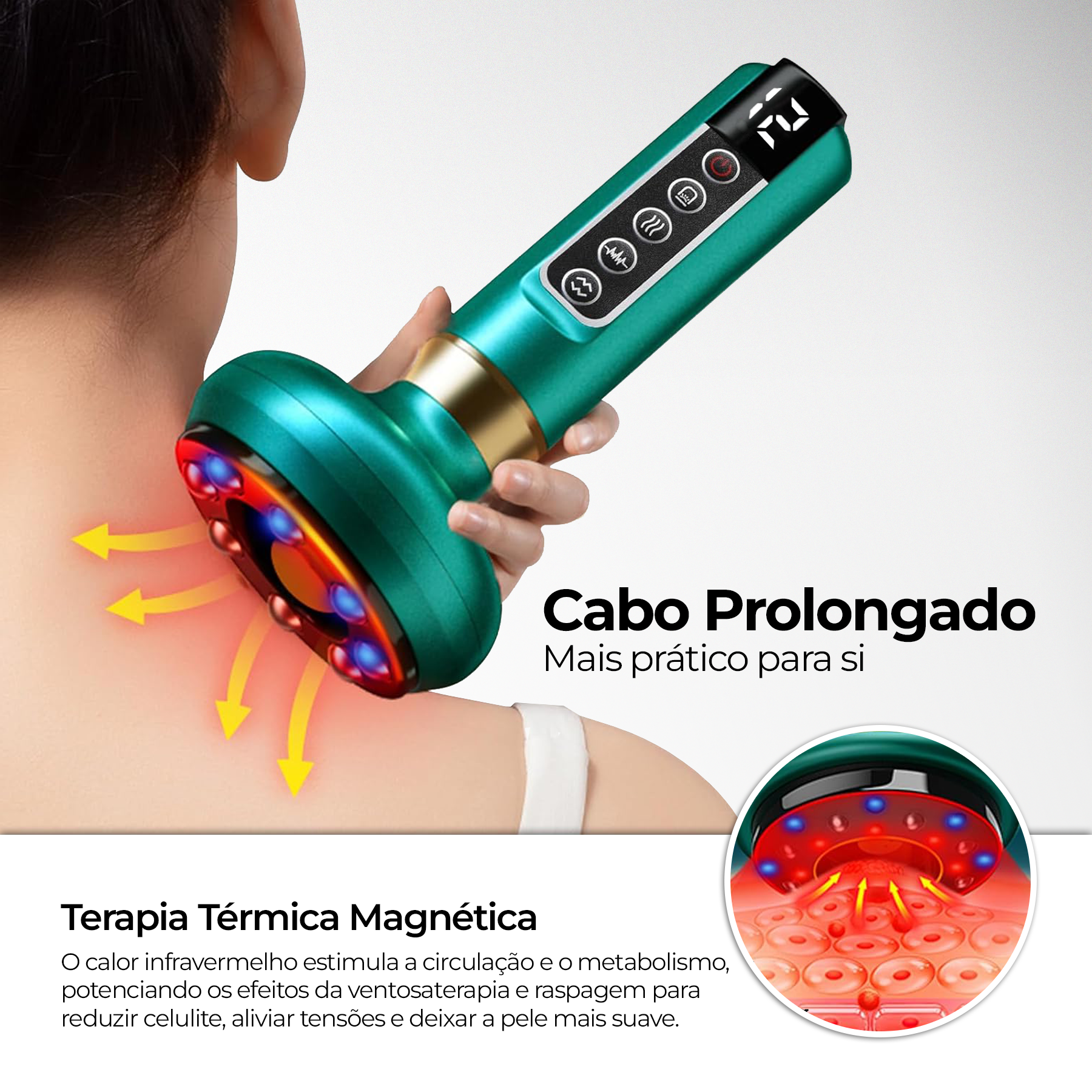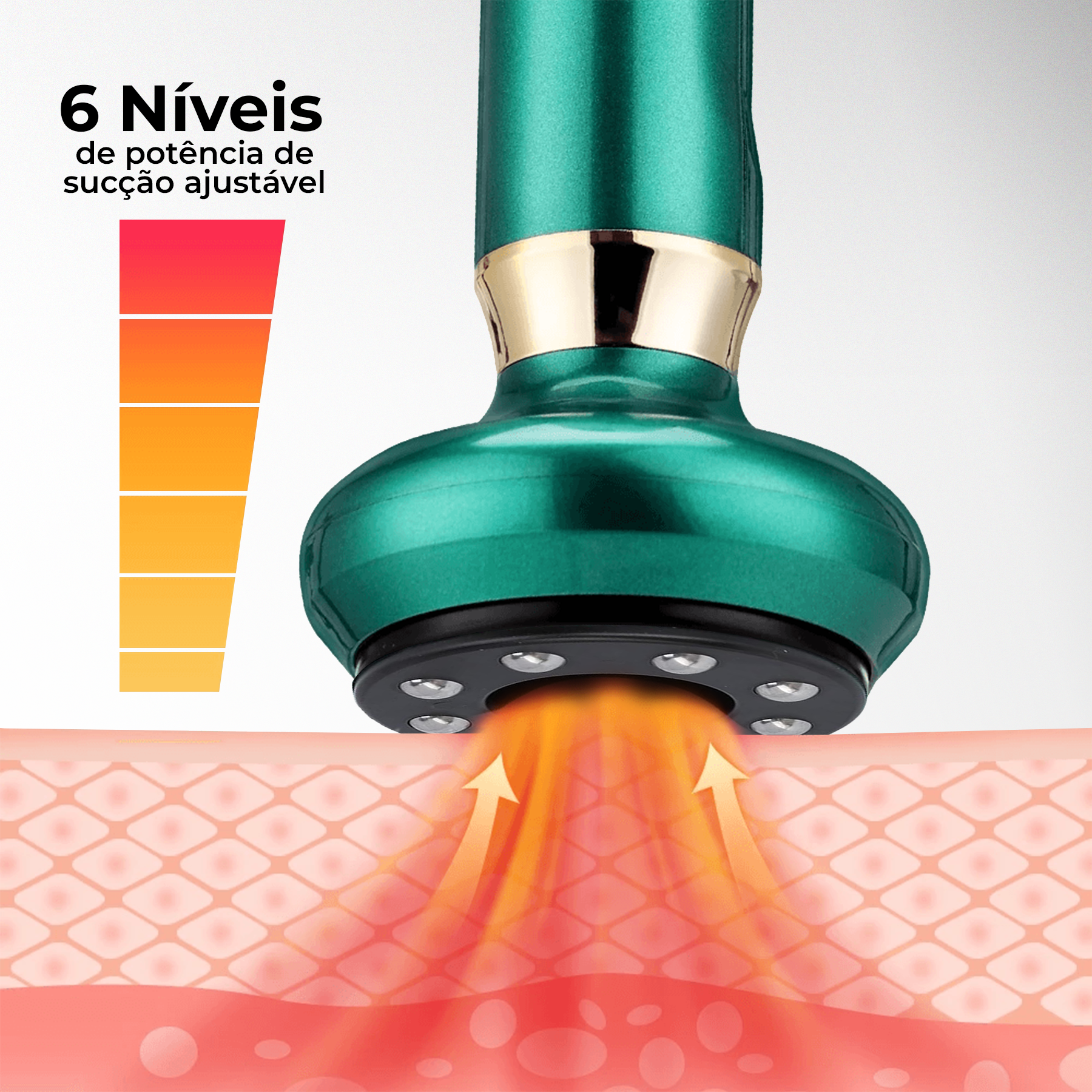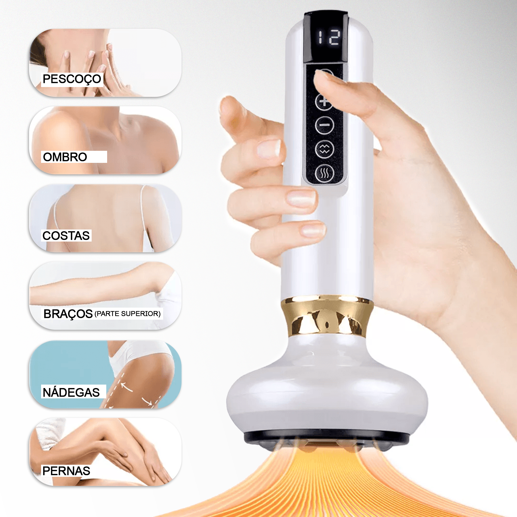 Ataque furinhos teimosos e áreas ásperas com ventosaterapia avançada e calor infravermelho.