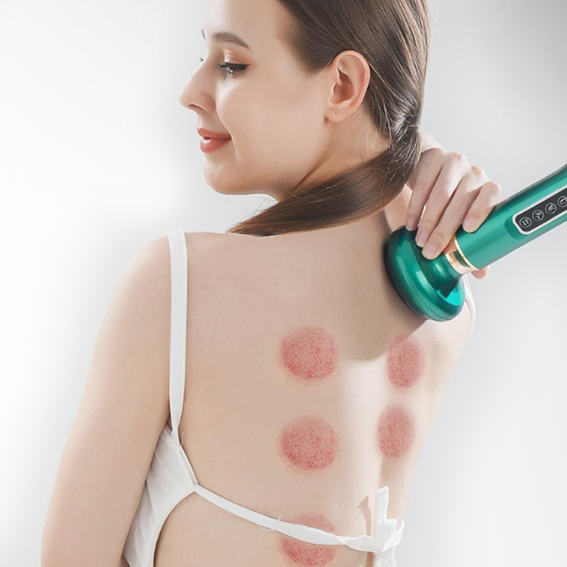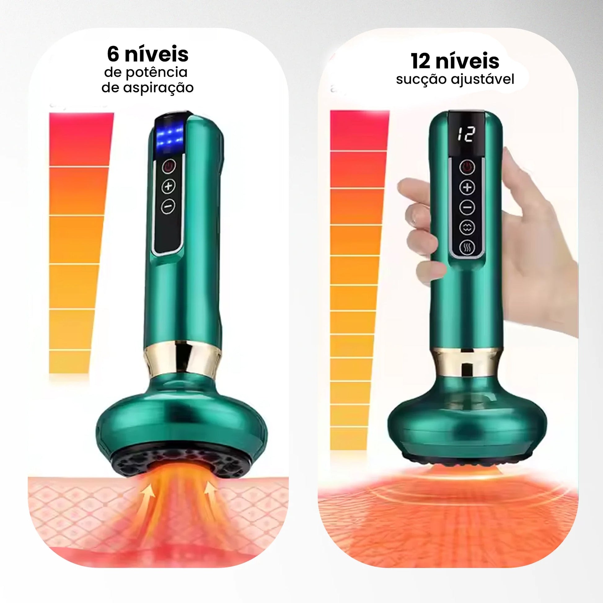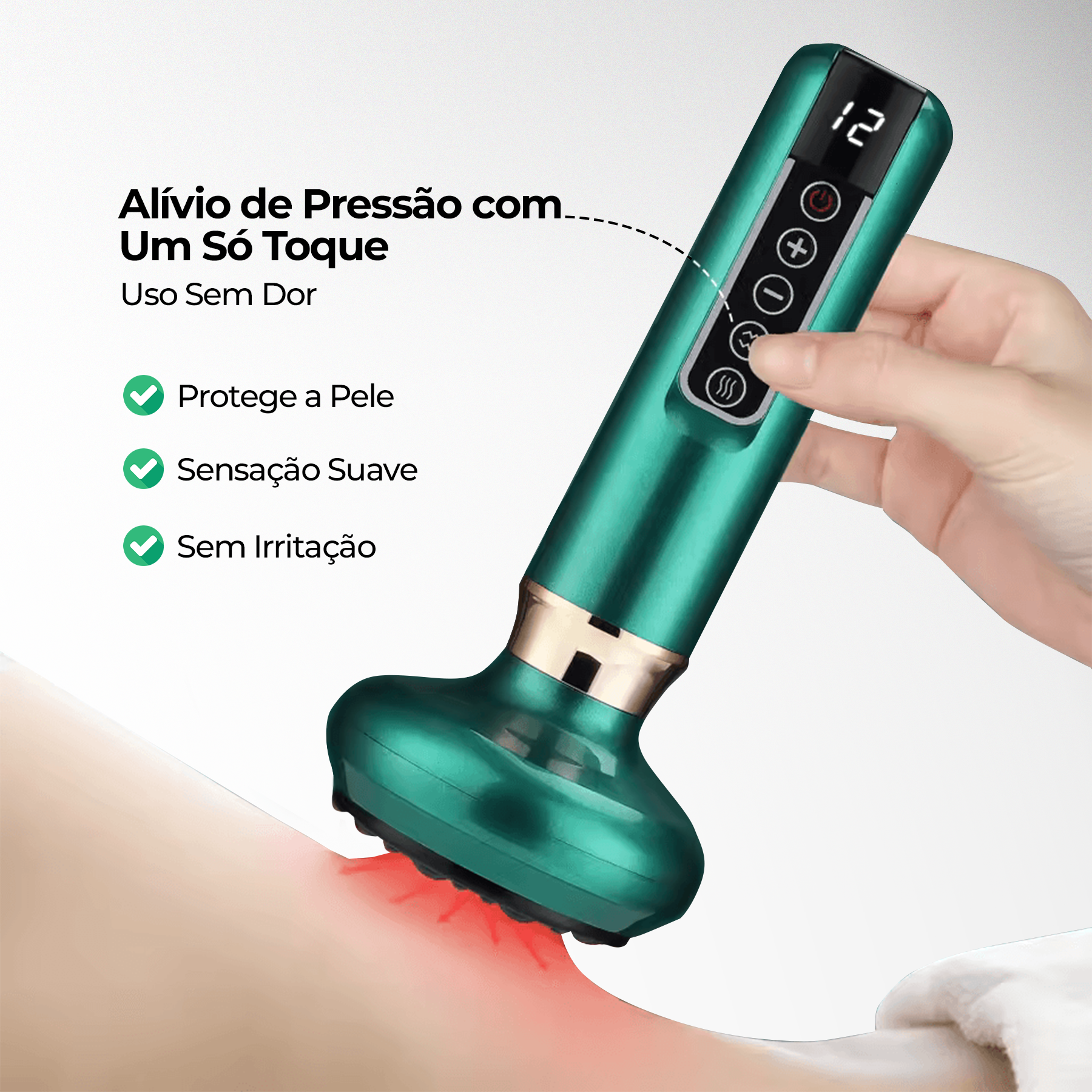 Ataque furinhos teimosos e áreas ásperas com ventosaterapia avançada e calor infravermelho.
